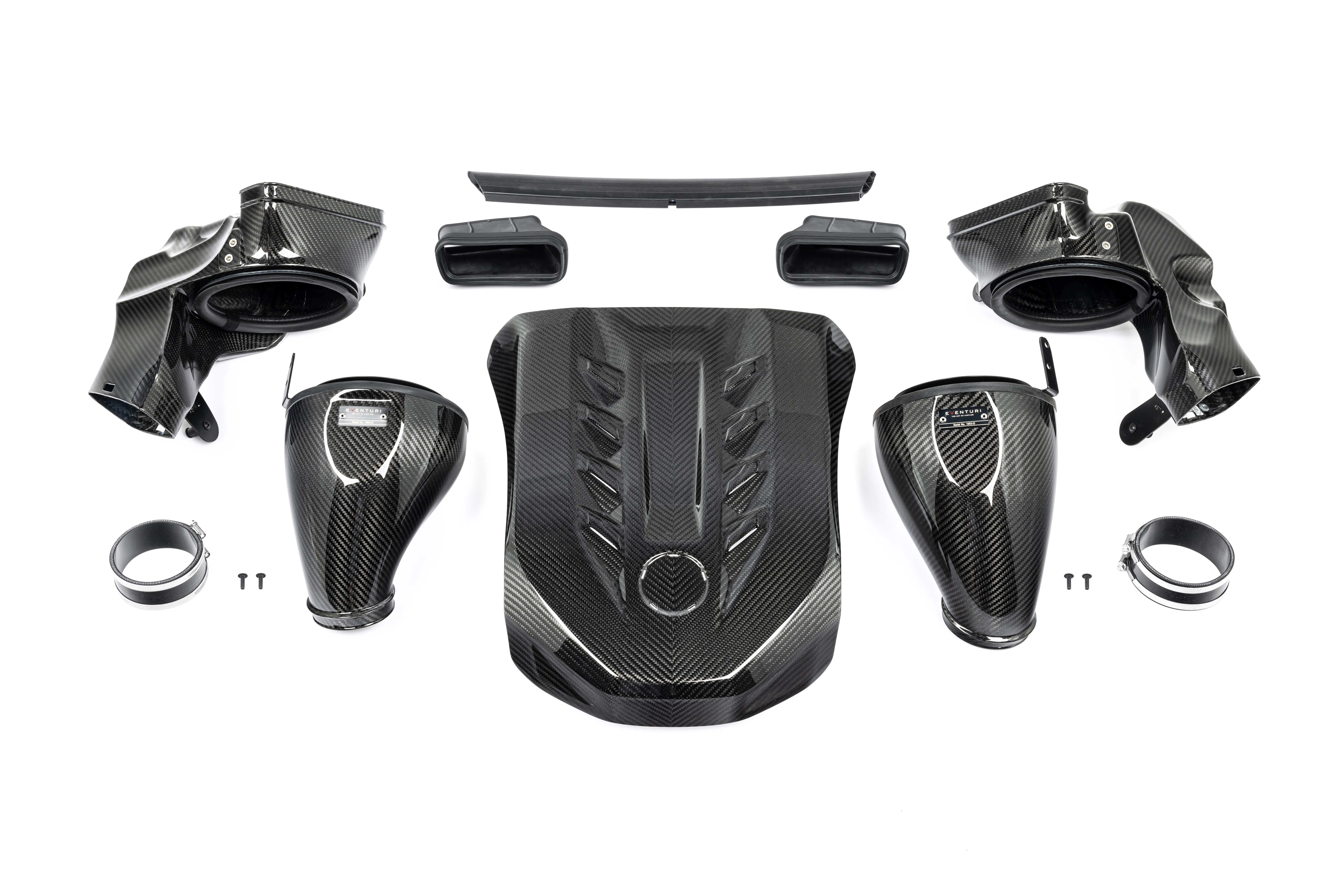 The Eventuri X5, X6 M50i intake system consists of a number of components engineered to perform a specific purpose and fabricated to the highest of standards. We use 100% pre-preg carbon fiber with no fibreglass which means we can achieve a smooth internal surface to maintain smoother airflow. Here are the details for each component and the design ethos behind them: