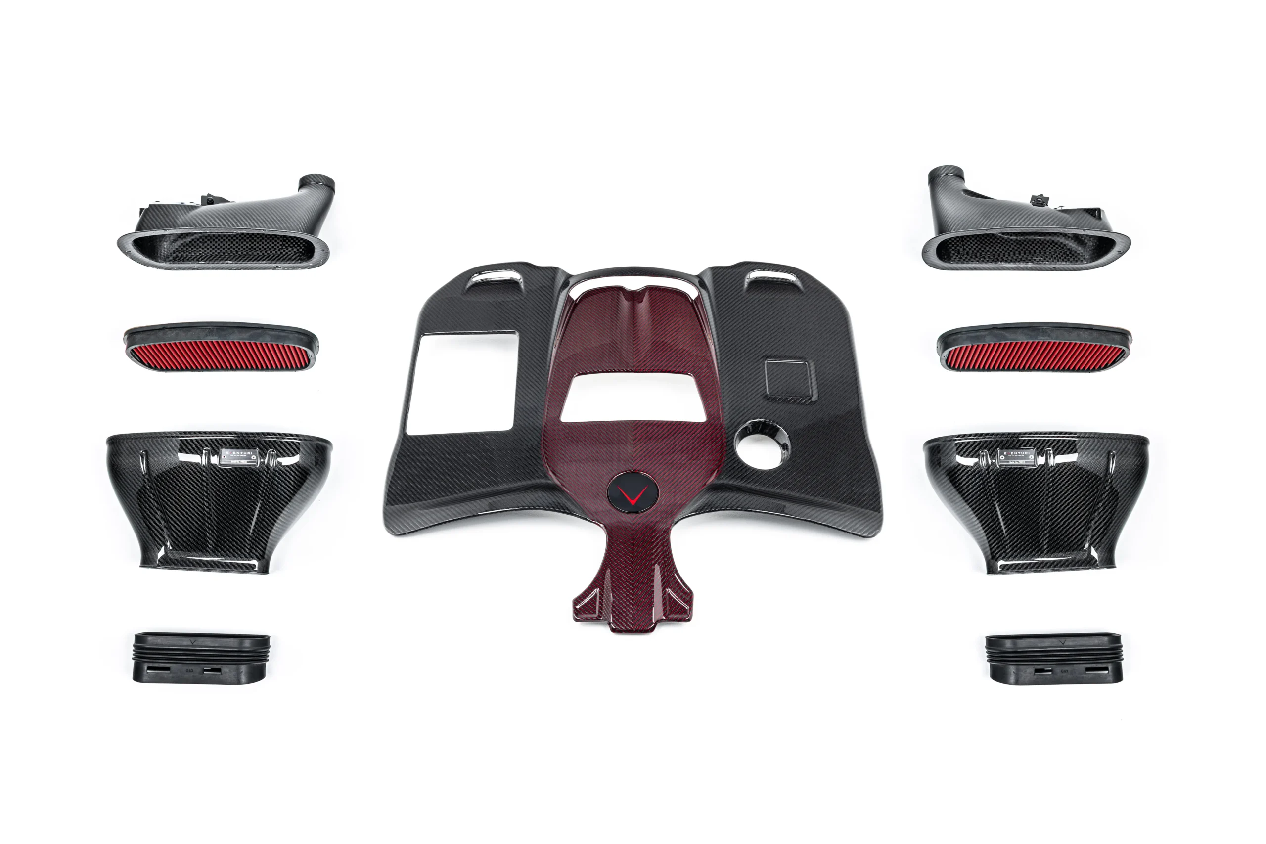 The Eventuri G63 AMG intake system consists of a number of components engineered to perform a specific purpose and fabricated to the highest of standards. We use 100% pre-preg carbon fiber with no fibreglass which means we can achieve a smooth internal surface to maintain smoother airflow. Here are the details for each component and the design ethos behind them: